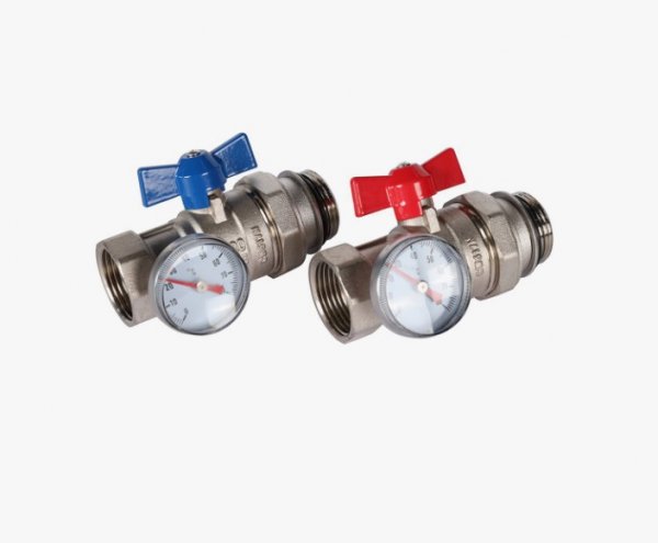 Кран шаровой 1 гш американка бабочка (с термометром) ROMMER