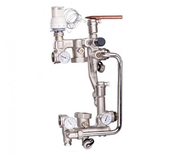 Узел обеспечивает поддержание заданной температуры и расхода во вторичном циркуляционном контуре, гидровалическую увязку первичного и вторичного контура, а также позволяет регулировать температуру и расход теплоносителя в зависимости от требований пользователя.