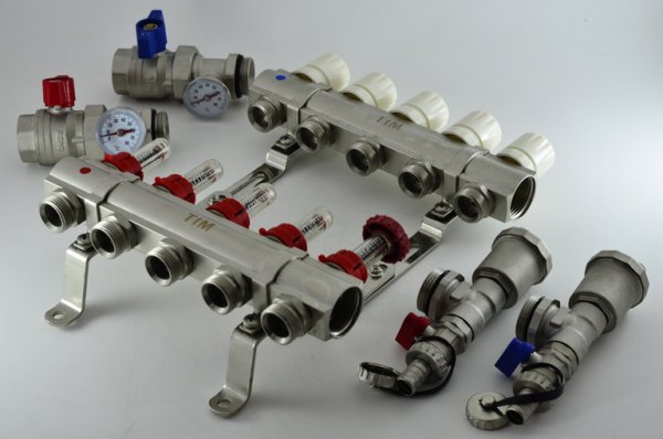 Каждая труба системы водоснабжения, отопительной системы водяного отопления или теплого водяного пола подключается к коллектору, что позволяет осуществлять регулировку и контроль потока теплоносителя индивидуально в каждом циркуляционном контуре.