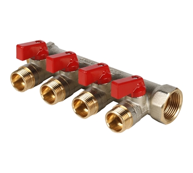 Коллектор 3/4х1/2х4 гш шар/кран ник. (красные ручки) STOUT