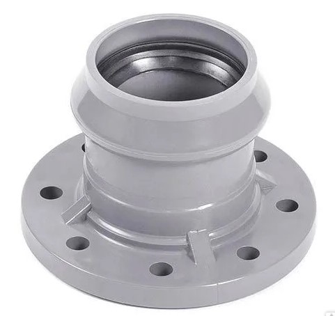 Этот фитинг идентичен патрубку раструбному с металлическим фланцем. Изменение материала сделано с целью снизить затраты на производство изделия, не меняя при этом его потребительских свойств.