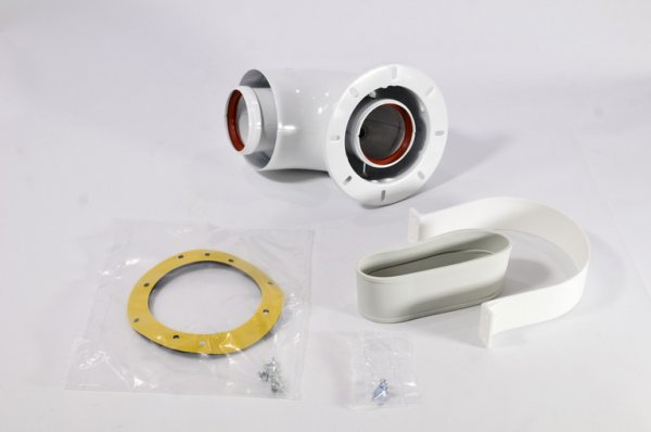 STOUT Элемент дымохода Ø60/100 адаптер для котла угловой 90° коаксиальный (совм. Bosch, Buderus)