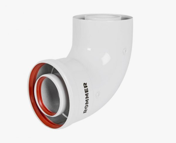 ROMMER Отвод промежуточный INOX Line традиционный коаксиальный D60/100, 90 гр. (мама/папа)