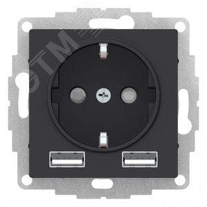 USB c заземлением и шторками 16А КАРБОН ATLASDESIGN розетка