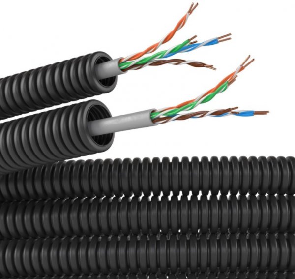 Труба гибкая гофрированная 16мм с кабелем витая пара 5EU/UTP нг(А)-HF (100м)