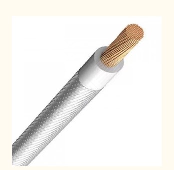 Жила в кремнийорганической резине (силикон жаростойкий), обвитая стекловолоконной оплеткой.