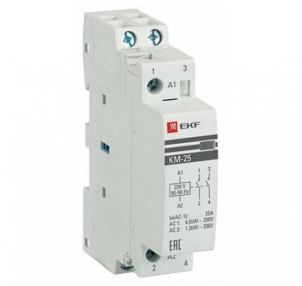Контактор модульный 2НО 25А 220В 1P КМ EKF km-1-25-20