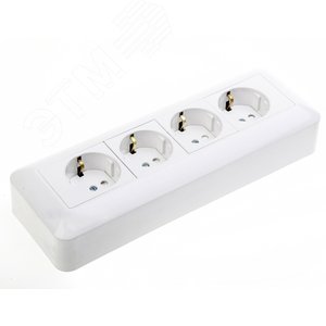 Розетка 4 поста наружная с заземлением 250В 16А со шторками белая монтажная пластина