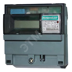Счетчик электроэнергии Меркурий 201.4 однофазный однотарифный, 10(80), кл.точ. 1.0, D, ЖКИ, имп. выход (201.4)