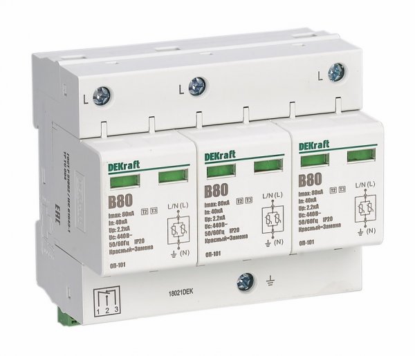 Ограничитель перенапряжения четырехполюсный ОП-101 4п 80кА класс 1(В) 420В (сигнальный контакт)