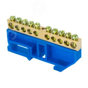 Шина N нулевая 10 контактов + изолятор на DIN-рейку латунь (sn0-63-10-d)