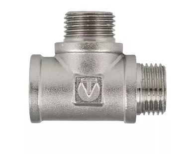 Латунный никелированный трехсторонний фитинг, равнопроходной. Резьба – внутренняя/наружная/наружная, цилиндрическая трубная по ГОСТу 6357 (ISO 228, EN 10226). Внутренняя резьба совместима также с наружной конической трубной резьбой по ГОСТу 6211 (ISO R7). Интернет-магазин www.td-viko74.ru