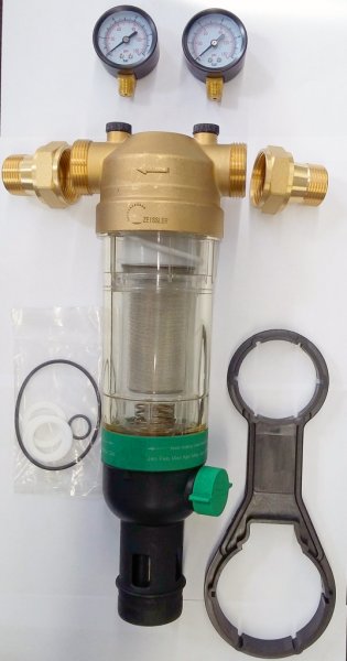 Фильтр с манометром стекл. корпус 1 - 1 1/4 ( до 80 С) с обратной промывкой