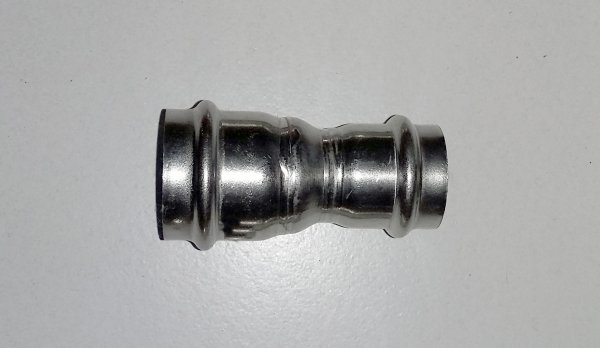 Пресс-муфта двухраструбная 22х28 из нержавеющей стали. Высококачественный пресс-фитинг из нержавеющей стали с уплотнением из EPDM для 100% герметичности. Соединение – бесштуцерное, обжатие производится с помощью пресс-инструмента V-профиля.