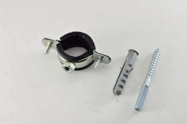 Хомут стальной 3/4 (25-29) с резиновым уплотнителем и крепежом М8х80+дюбель (72шт/уп) STOUT