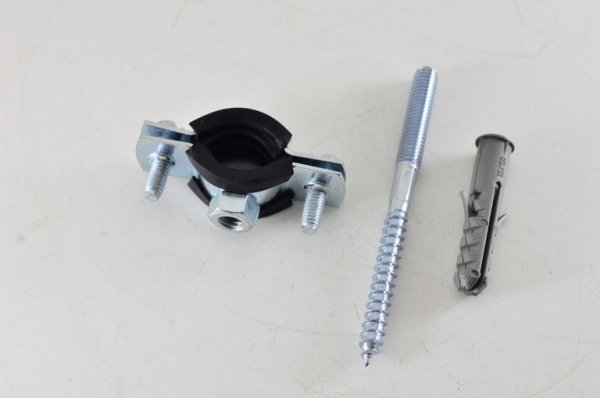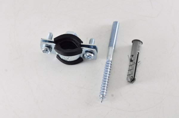 Хомут стальной 3/8" (15-19) с резиновым уплотнителем и крепежом М8х80+дюбель (200шт/уп)