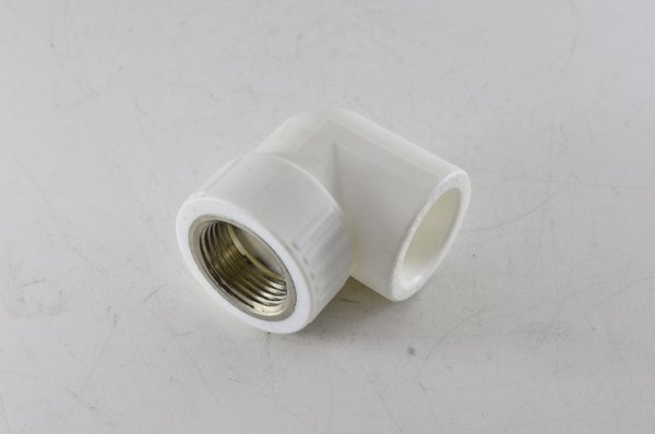 С помощью угольника комбинированного можно легко соединить полипропиленовый трубопровод со стальной запорной арматурой или стальным трубопроводом.