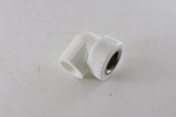 Угольник полипропиленовый комбинированный с внутренней резьбой из полипропилена "Рандом сополимер" PPRC, Температура рабочей среды 95оС , максимально допустимое рабочее давление 2,5 МПа, способ сварки встык, цвет белый Интернет-магазин www.td-viko74.ru
