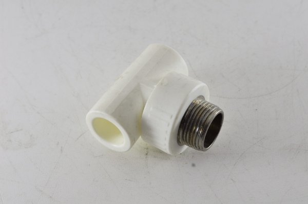 Тройник комбинированный с наружной резьбой предназначен для резьбового соединения полипропиленовых труб со стальной запорной арматурой или стальными трубопроводами в местах разветвления труб.