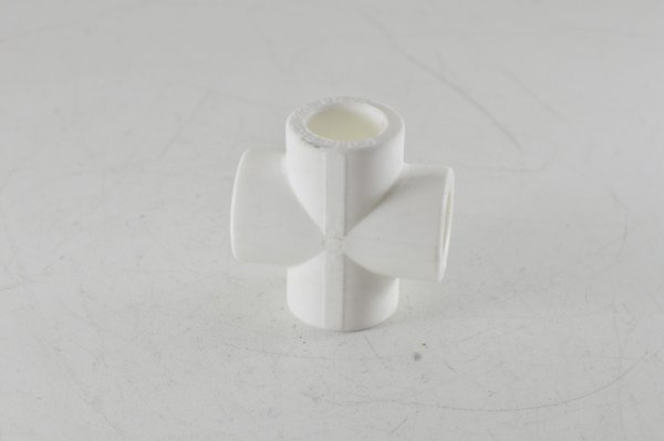 Фитинг для соединения четырех полипропиленовых труб равного диаметра (крестовина). Монтаж производится методом раструбной сварки. Интернет-магазин www.td-viko74.ru