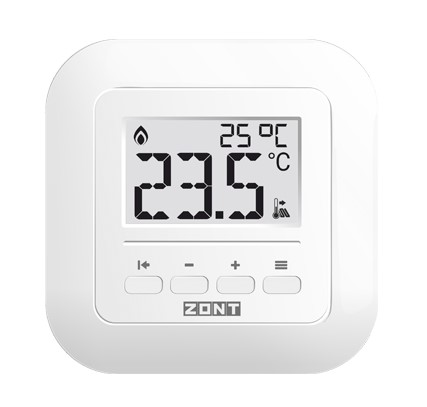 Комнатный двухпозиционный термостат ZONT МЛ-232 предназначен для поддержания постоянной температуры в отдельной зоне обогрева. Ввод целевого значения температуры осуществляется вручную или дистанционно из сервиса ZONT. Является дополнительным устройством и работает только совместно с контролером ZONT. Подключение к основному прибору осуществляется через интерфейс RS-485. Предназначен для установки внутри помещения.
