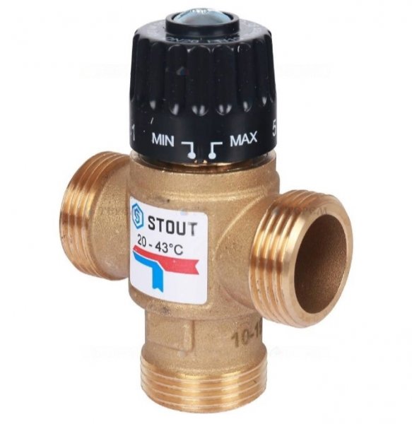 Клапан 3-Ходовой термостатический смесительный 1 НР (с боковым смешением; Kv 2,5; t:20-43С) STOUT