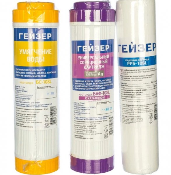 Сорбционный картридж (БАФ) удаляет из воды хлор, органические примеси, снижает содержание железа и тяжелых металлов.