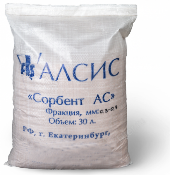 1мешок содержит 30л сорбента (Вес 13 кг)